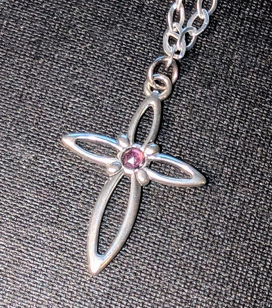 Open Cross Necklace with Gemstone